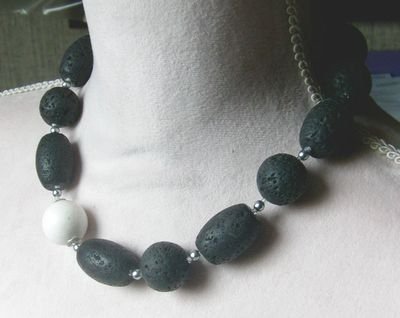 Kleinanzeige Helvesiek Sammlungen Schmuck-edelmetalle-uhren Elegane Lavakette mit seitlich eingefasster weisser Koralle