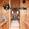 Diese Fass Sauna bietet Platz für bis zu vier Personen. In dem Vorraum haben Sie sowohl die Möglichkeit sich auch bei kalten und nassen Witterungsbedingungen umzukleiden als auch gemütlich zu entspannen.