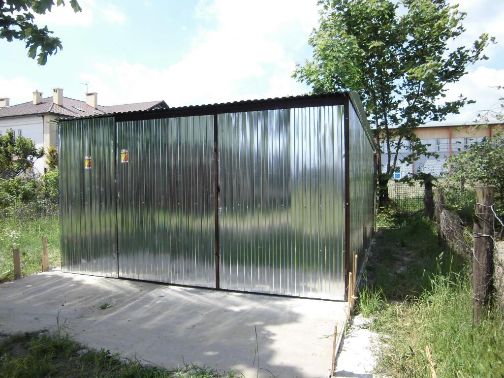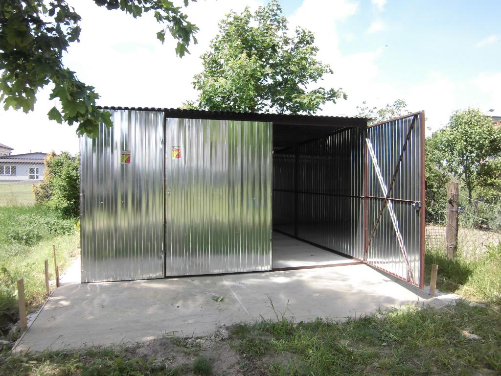 Wir bieten Ihnen hier: 4x6 verzinkte Blechgarage mit Dachschräge nach hinten, mit Doppeltür an.