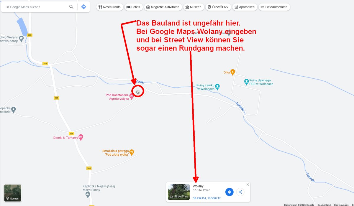 Wolany, der Ort in dem sich das Bauland befindet liegt am Südhang des Sudetengebietes mit der höchsten Ausdehnung des Riesengebirges. Die nächste große Stadt ist Glatz. Und die Hauptstadt Niederschlesiens ist Breslau.