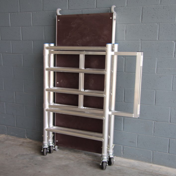 Ausgestattet ist das Zimmerfahrgerüst mit soliden Rollen und einer Plattform mit einer maximalen Tragfähigkeit von 225 Kg.