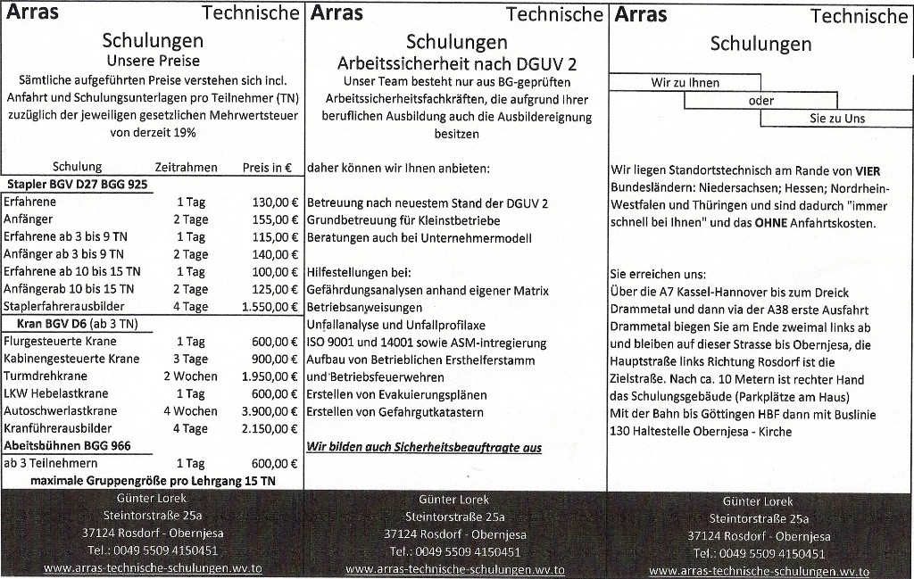 Im Preis enthalten sind Schulungsunterlagen sowie die Beurkundung des Ausbilders nach bestandener Prüfung.