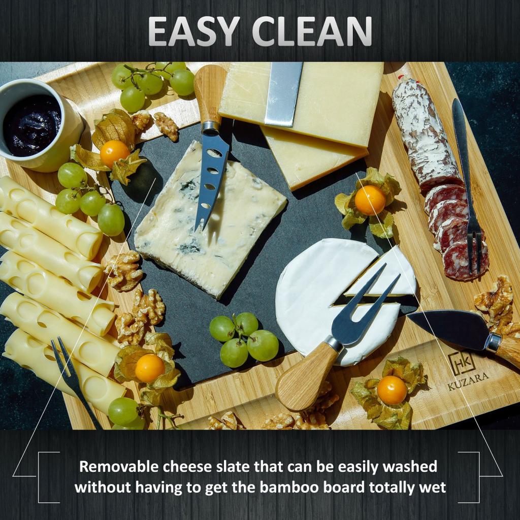 Unser Bambuskäsebrett ist aus feinstem reinem Bambus gefertigt, was bedeutet, dass es natürliche antibakterielle