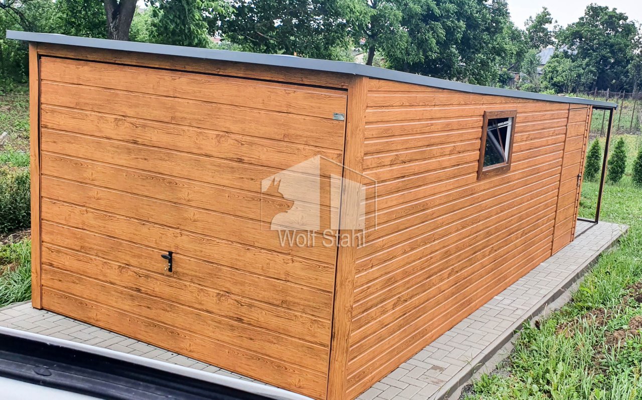 Blechgarage 3x6m Metallgarage Carport und Garage Überdachung Holzoptik ID87