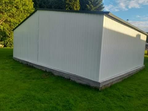 Die Vorderseite der Garage ist aus Trapez Blech in Weiß RAL 9010 gefertigt.