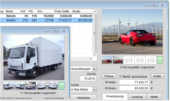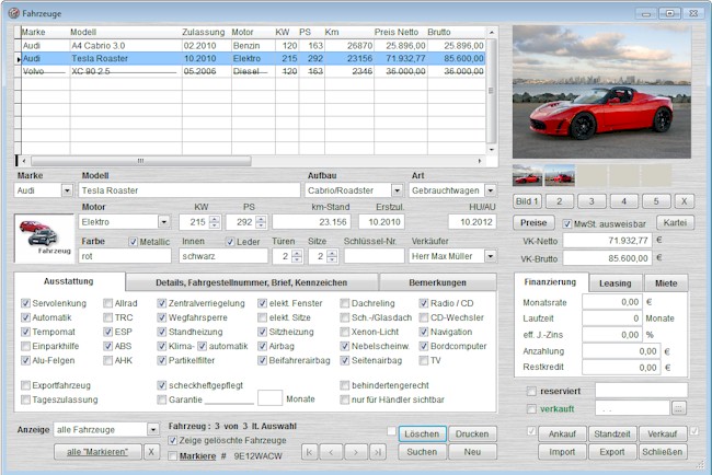 Fahrzeuge mit allen technischen Daten und Preisen erfassen, sondern auch Ihren Kunden optisch hochwertig praesentieren. Uebersichtliche Verwaltung von Neu- und Gebrauchtfahrzeugen -
