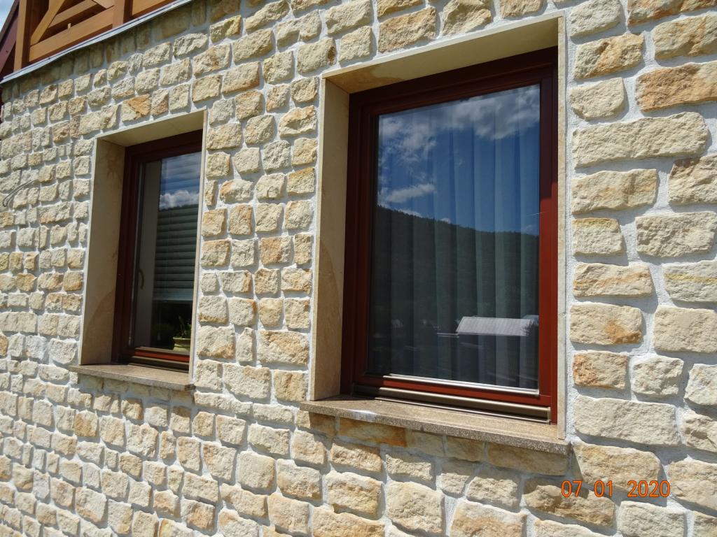 Spalttafel “Schichtmauer” das sind geschnittene Elemente, die wie Ziegel aussehen. Solche Tafeln haben Klebseite zum Grund (nach Säge), d. h. Glatt,