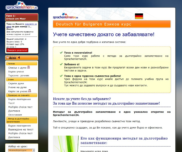 Die Menüführung dieses Deutschkurses ist auf Bulgarisch.