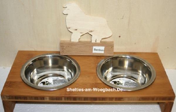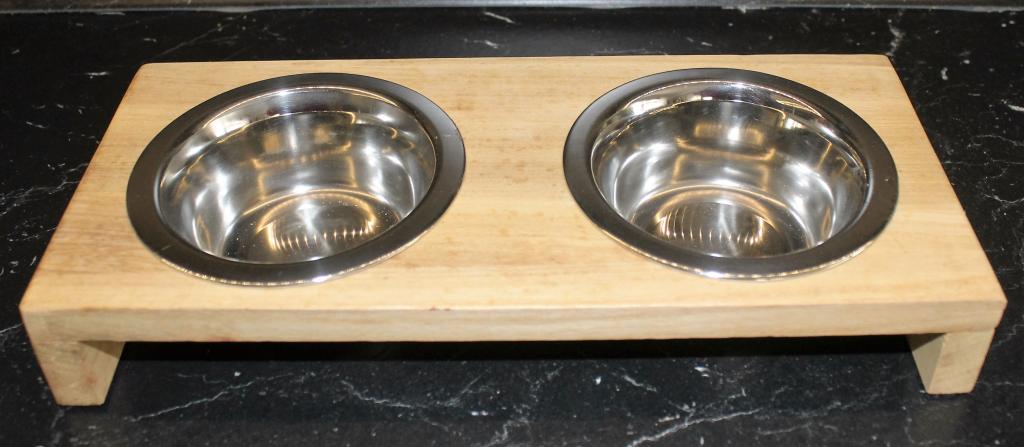 Lieferung mit 2 Edelstahl Näpfe…… Bitte beachten Sie die Größen und vor allem die Höhe der Näpfe: Doppel- Futternapf: Größen (L x B x H in cm): klein: ca. 27 x 13 x 5 cm...29,00 € mittel.ca 35 x 16 x 6 cm....39,00 € groß: ca. 47 x 22 x 8 cm…...49,00 €