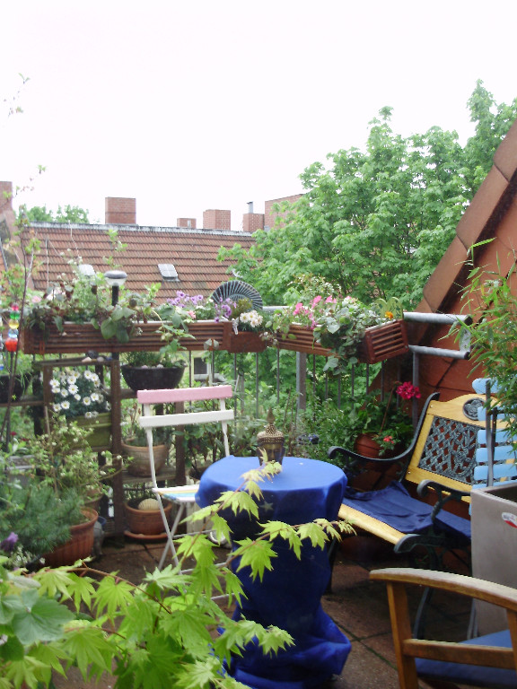 Meine voll eingerichtete hübsche Wohnung liegt im HH ganz oben, deswegen hört man von der Terrasse vor dem