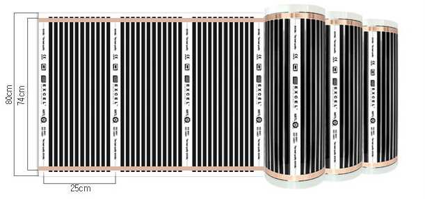 Das neuen Kohlenstoff-Kupfer-Legierung und Polymerfilme (sind nur 0.3mm dick), die unter dem Boden eingebettet ist, Ihre Wohnung (Bad, Flur, Kinderzimmer, Terrasse, Balkon, etc.) Boden als ein Heizkörper macht, für die Heizung ist elektrische Energie verwendet. Nichts mehr wird benötigt sein, um angenehme Temperatur (21-34C) zu halten, aber wenn Sie möchten, können Sie auch mehr einstellen! Ihr Boden wird immer warm und trocken.