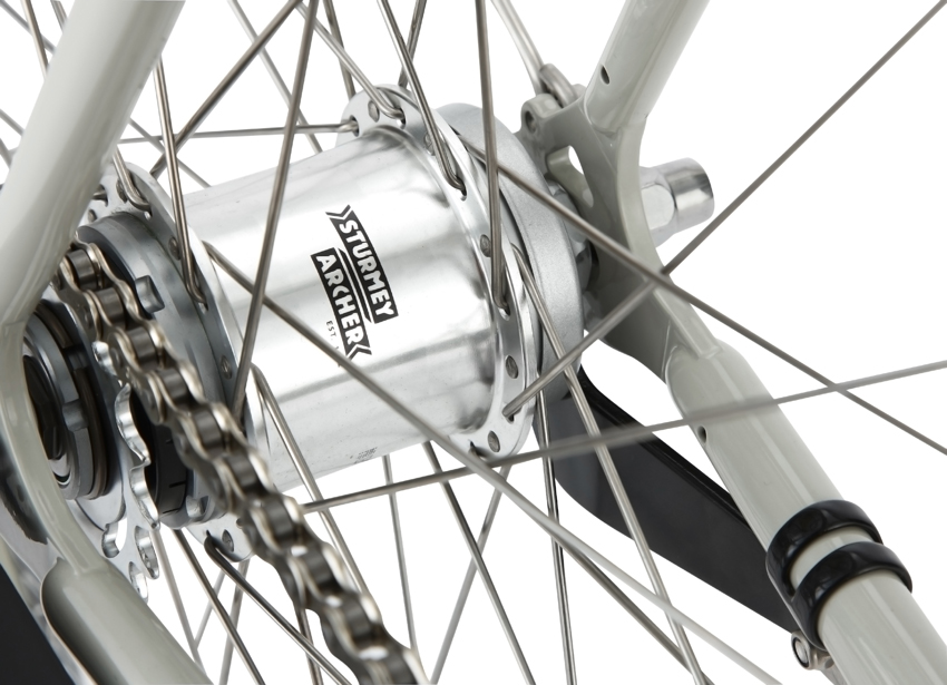 Trommelbremse vom englischen Traditionshersteller Sturmey Archer eignet sich das Velo für Stadt und Land. Der schlank und leicht gehaltene Flyer auf technisch hohem Niveau ist ein echter