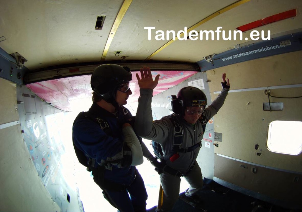 Ausbildung aus der Pink Skyvan, bequemer stehender Absprung und 4300m Absprunghöhe.