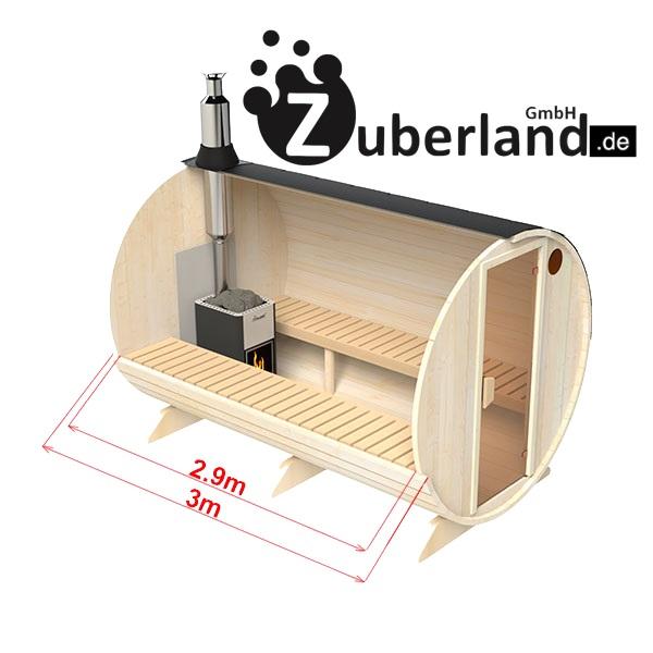 Fass-Sauna , Saunafass, Sauna (Länge 3m, Durchmesser 2m) mit Elektro-Ofen
