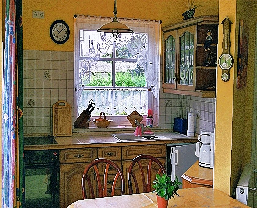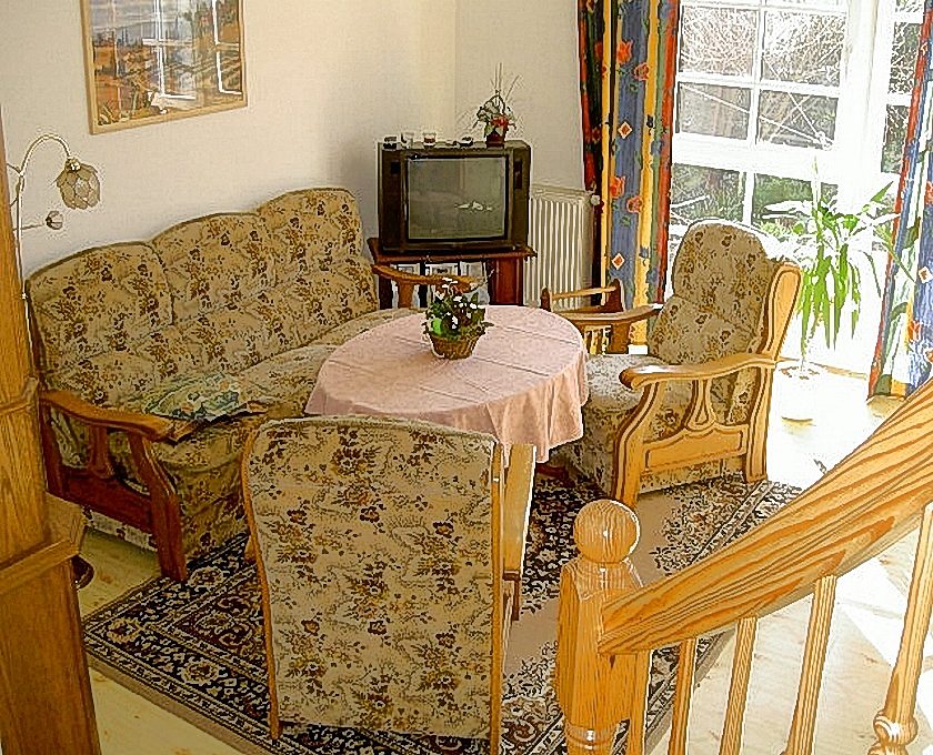 Ferienhaus (70 m²) besteht aus einem Schlafzimmer mit Bad in der oberen Etage, Wohnzimmer und Küche. Gäste-WC und Flur befinden sich in der unteren Etage. Das Ferienhaus ist ruhig gelegen und nur etwa 10 Minuten vom weißen Ostseestrand entfernt. Weiterhin gibt es eine große Terrasse mit