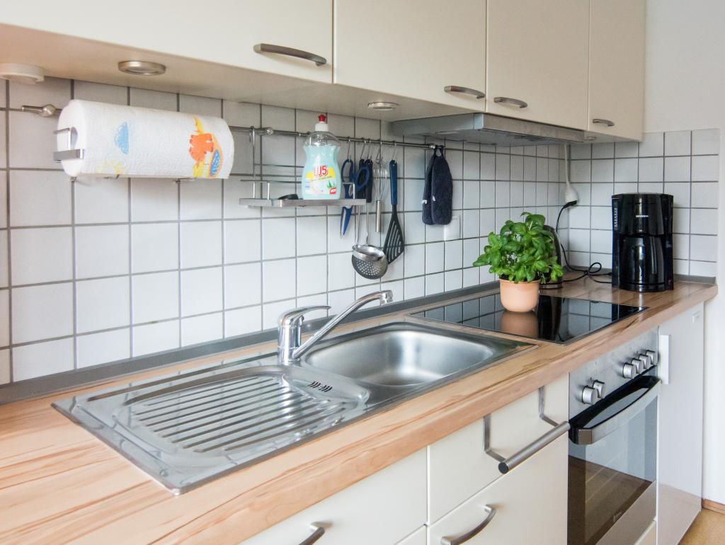 Doppelbett, ein Flur, eine helle und freundliche Wohn-Küche mit zus. Schlafgelegenheit, eine bestuhlte Terrasse und ein Parkplatz. Sie wird ganzjährig als
