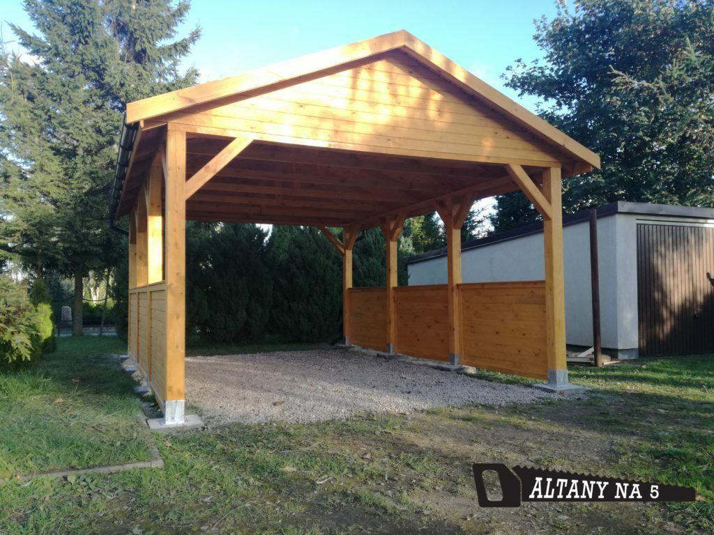 Abmessungen 3,5x5m, das aus Kiefern- uns Fichtenholz herausgestellt wird und mit Holzschutz Drewnochron in von Ihnen gewählten Farbe imprägniert. Das Muster von Farben finden Sie auf dem Foto.Das Garagenvordach wird mit Bitumenschindeln bedeckt(die Farbe ist auch zur Auswahl : braun, schwarz, grün, rot).Das Garagenvordach kann für das Auto benutzt werden, aber nicht nur! Sie können unter dem Vordach z. B. Holz aufbewahren! Das Holzgartenvordach sieht schön im Garten aus, ohne die Gesamtharmonie der