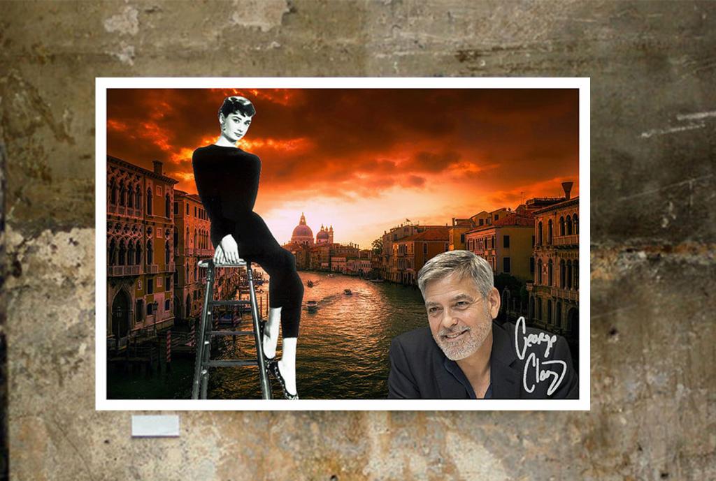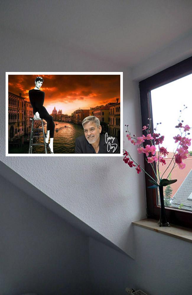 GEORGE CLOONEY + AUDREY HEPBURN in Venedig Souvenir. 60x40 cm. Blickfang! Gesche