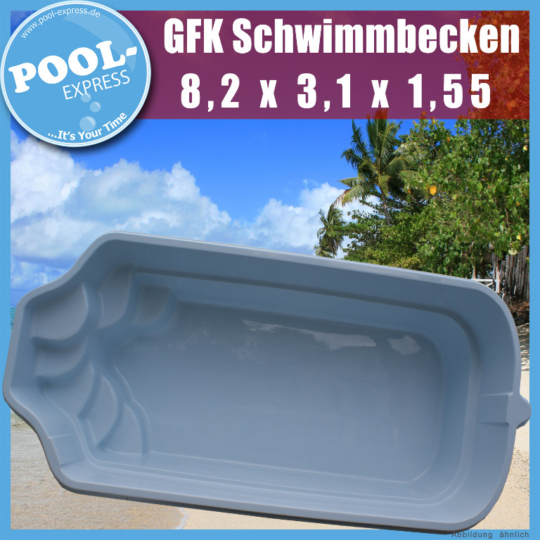 GFK Schwimmbecken 8,2 x 3,1 x 1,55 GFK Pool vollisoliert fertigpool einbaubecken