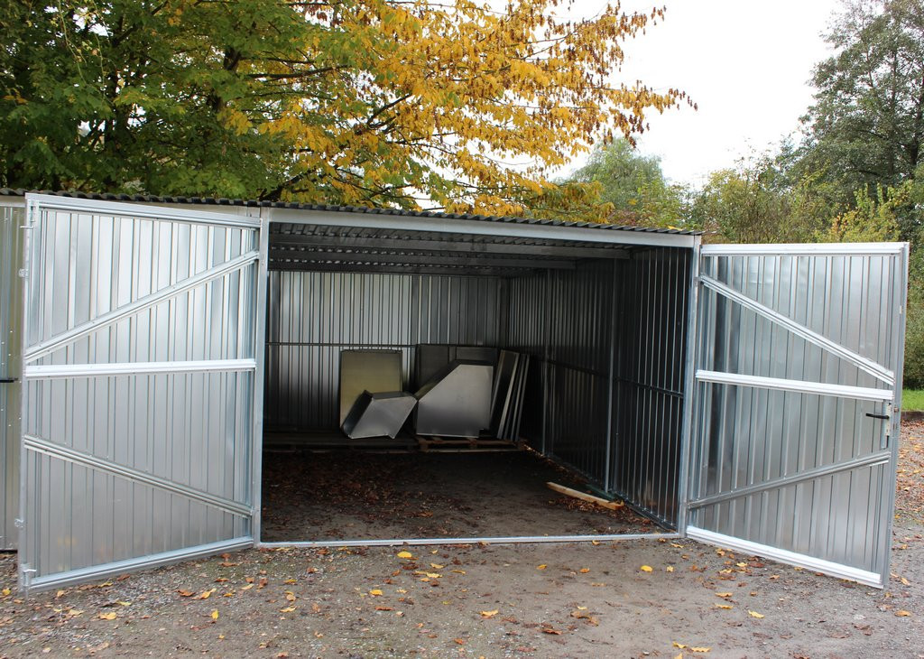 Metallgaragen (auch als Mehrzweckschuppen verwendbar) sind funktionelle und günstige Lösungen für Auto, Motorrad, Traktor, Mäher,