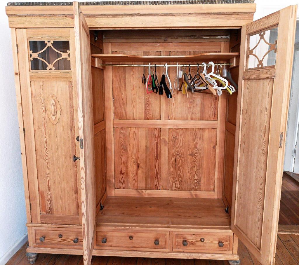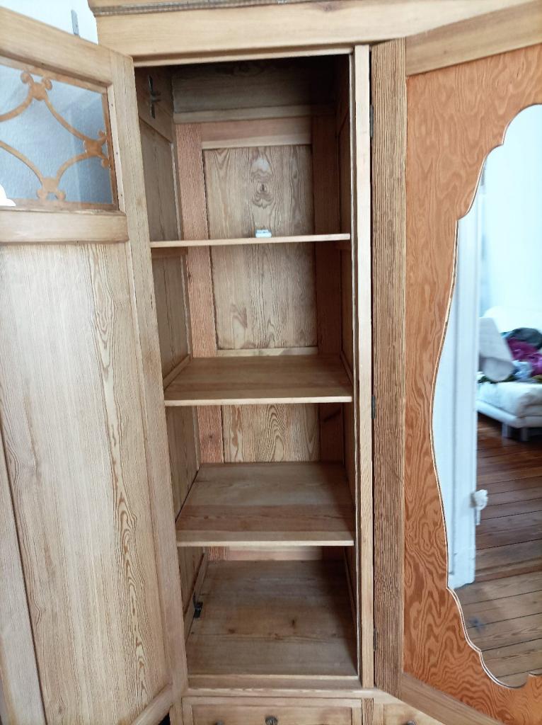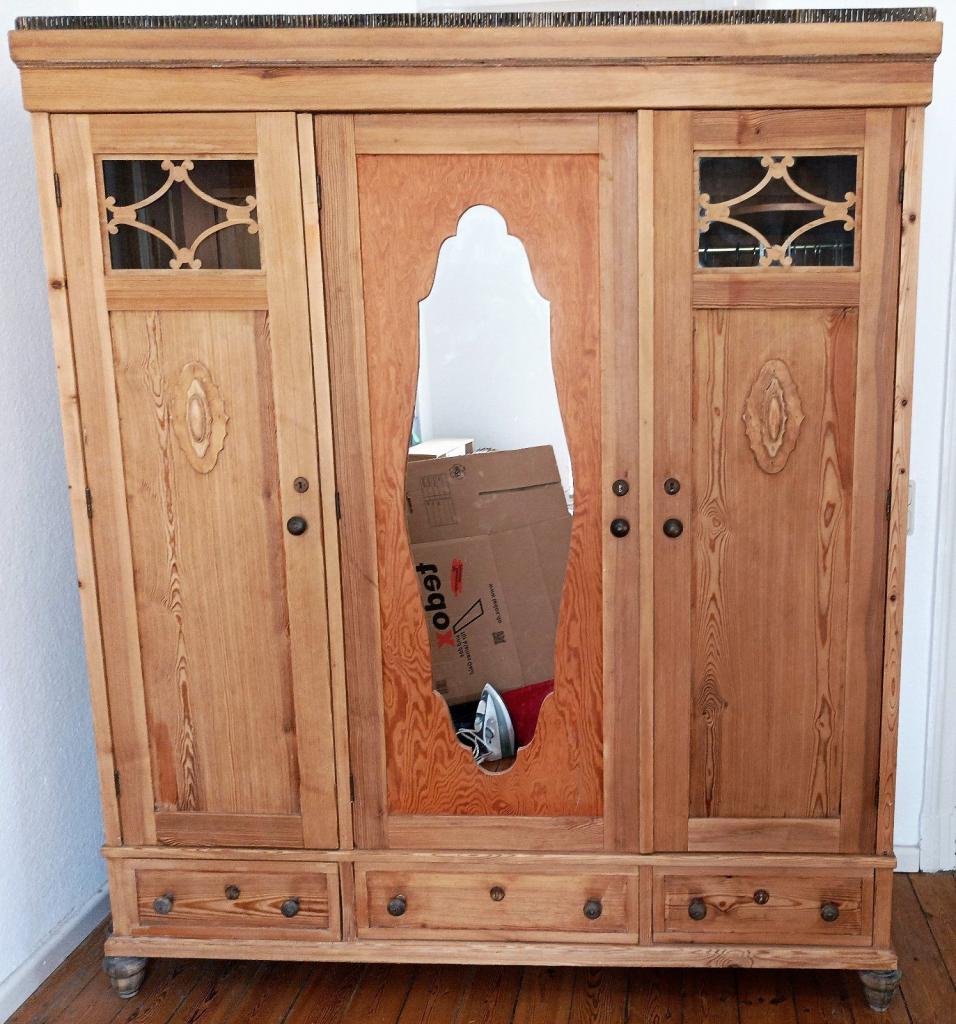 Großer Bauernschrank Kleiderschrank Holz natur mit Spiegel
