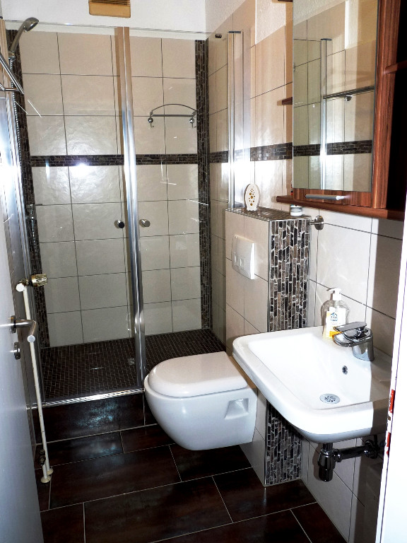 Die renovierten Bäder sind mit großen Duschbereichen ausgestattet.