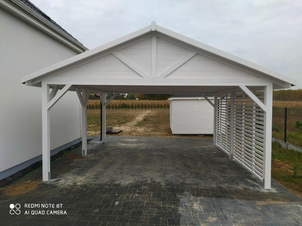 Alternativ zur Garage sein. Sie wird aus Kieferholz herausgestellt, das zweimal mit Holzschutz Drewnochron in von Ihnen ausgewählter Farbe imprägniert wird: Grün, Japanische Kirschfarbe, Wenge, Tik, Grau, Naturkiefer, Kiefer, Mittel Palisander, Palisander, Dunkle Nuss, Dunkle Eiche, Eiche und Zeder. Das Muster finden Sie auch auf dem Bild unten.