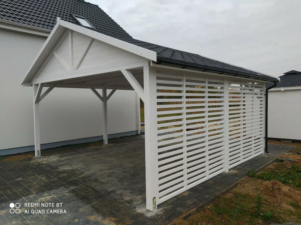 Wir bieten Ihnen hier: HOLZÜBERDACHUNG FÜR AUTO GARAGENVORDACH GARTENHAUS 5x5m an.