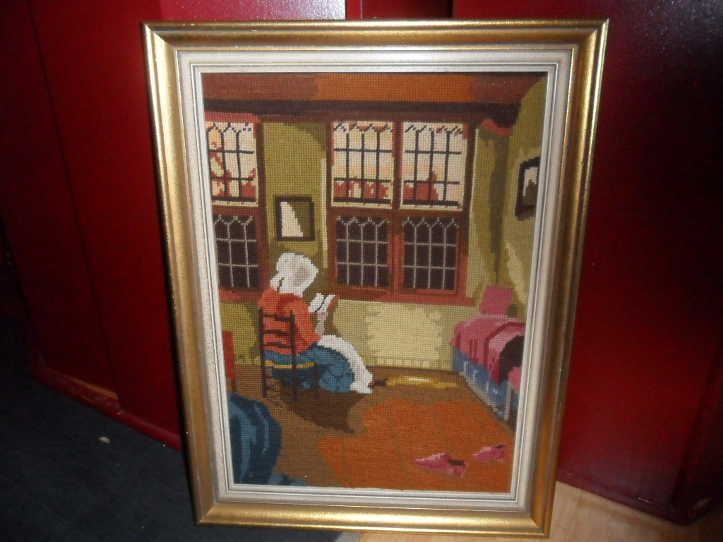 Handgestickter Gobelin mit Holzrahmen