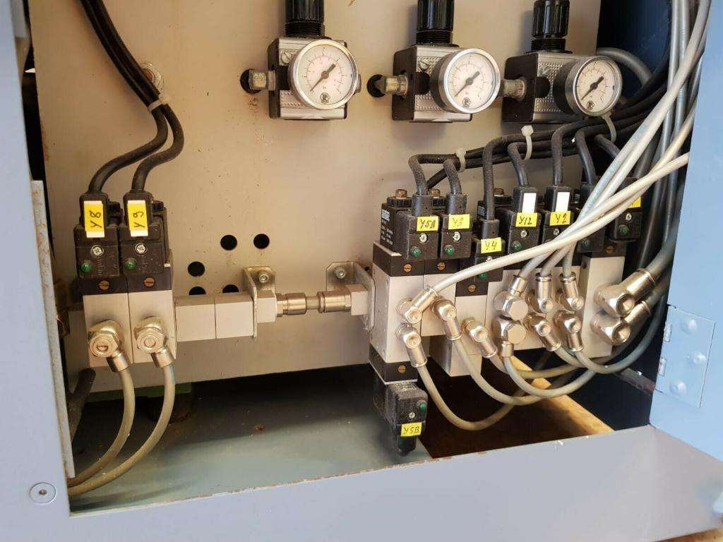Die Maschine hat als Extra eine pneumatische Aushebung der Fräsagregate.