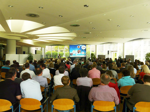 Betreuung und auch den passenden Projektor, die Audiotechnik inkl. Rednerpult und Podest, etc. mit an.