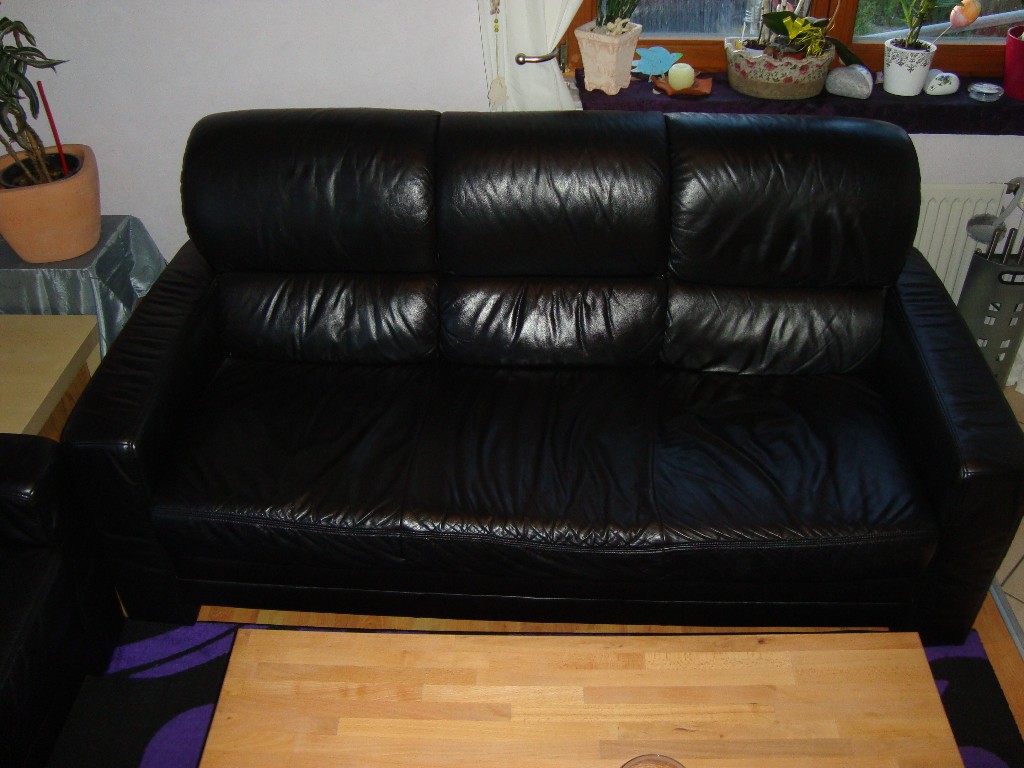 Ledersofa 2 und 3 Sitzer + Hocker