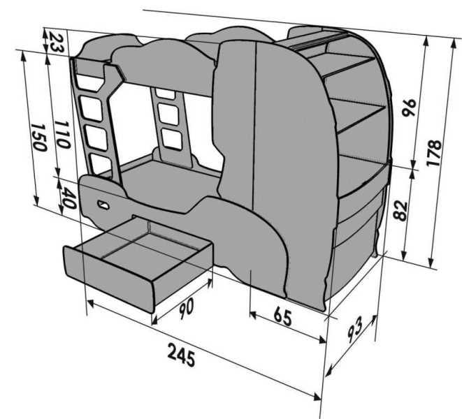 - Möglichkeit der Montage zum eingeschossigen oder zweigeschossigen Bett,