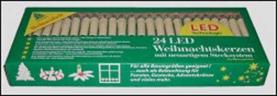 Nicht ganzjährig bieten wir in unserem Shop eine elektrische LED-Christbaumbeleuchtung mit dem praktischen Stecksystem und 24 großen warm-weiß leuchtenden LED-Kerzen für den Innenbereich zum Preis von 39,95 EUR und für den Außenbereich zum Preis von 47,-- EUR an.
