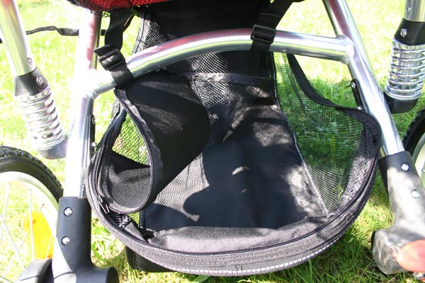 Praktisch sind auch die vielen Stauräume. Unterhalb des Sitzes befindet sich durch einen Reißverschluß schließbares Staufach mit genügend Platz für wichtige Utensilien. An der Rückenlehne befinden sich diverse Fächer für Kleinteile wie Luftpumpe (nicht im Lieferumfang enthalten) oder Handy.