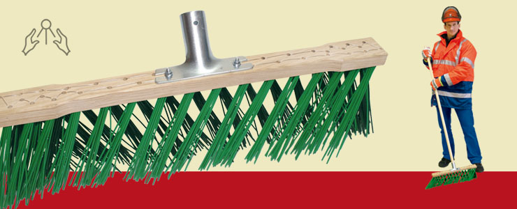 Die starken Nylon-Borsten garantieren gute Schabeeigenschaften auf Straßenbelägen,