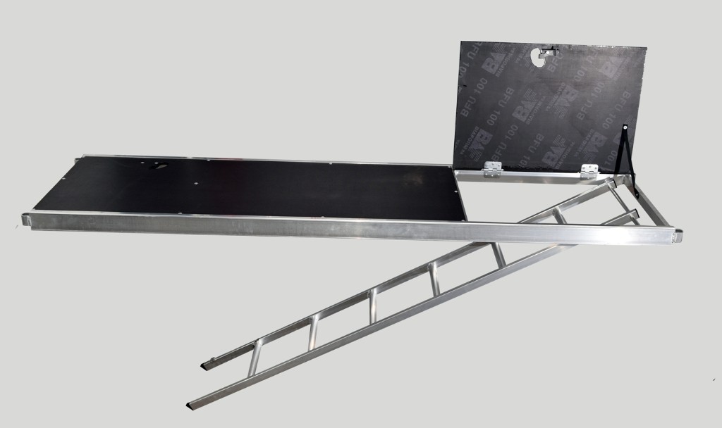 Geländerstütze 1,00 m RAM 2: 8 Stahl Stirnseiten-Geländerrahmen RAM 2 :2 Normalkupplung UNI :45 Gerüsthalter (Anker) 0,30 m UNI: 45 Gewindefußplatte 0,50 m UNI :20 Holzplatten: 10 Stahlboden 2,50 m RAM 2 :126 Stahl Rückengeländer einfach 2,50 m RAM 2 :171 Stirnbordbrett 2-bohlig RAM 2 :18 Bordbrett 2,50 m RAM 2 :81 untere Diagonalbefestigung RAM 2 :2 Ringschraube 0,23 m UNI :45 Spreizdübel UNI :45 Durchstiegstafel mit Sperholzbelag u. Alu-Leiter 2,50 m RAM 2 :18