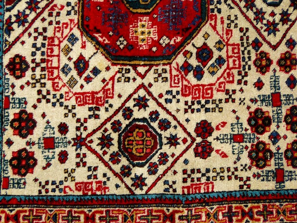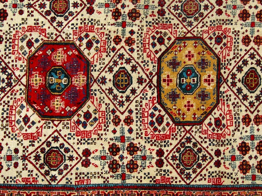 Bemerkungen: Ardebil liegt nicht weit vom Kaspischen Meer, die Wolle ist weich und fein, der Teppich ähnelt in Muster und Struktur denen des in der Nähe liegenden Schirwan in Azerbaidschan, wird oft verwechselt und wird auch ähnlich bewertet.