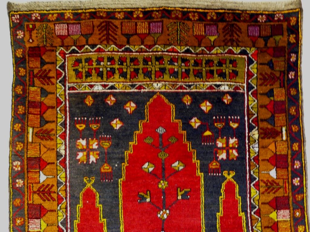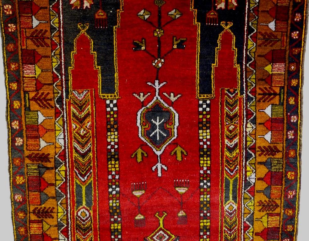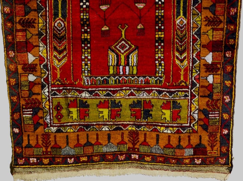 der Hauptbordüre stellen kleine Gebetsnischen dar. Der Teppich kann direkt als