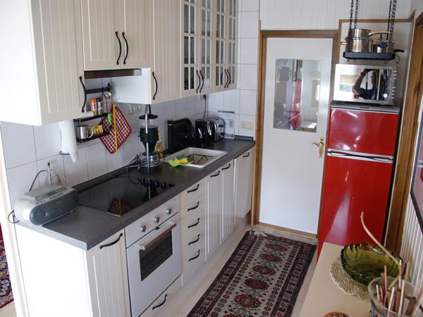 Küche: komplett eingerichtete Einbauküche, Cerankochfeld, Backofen, Kühlschrank mit Gefrierfach, Mikrowelle, Geschirrspüler, Dunstabzugshaube, Kaffeemaschine, Wasserkocher, Toaster