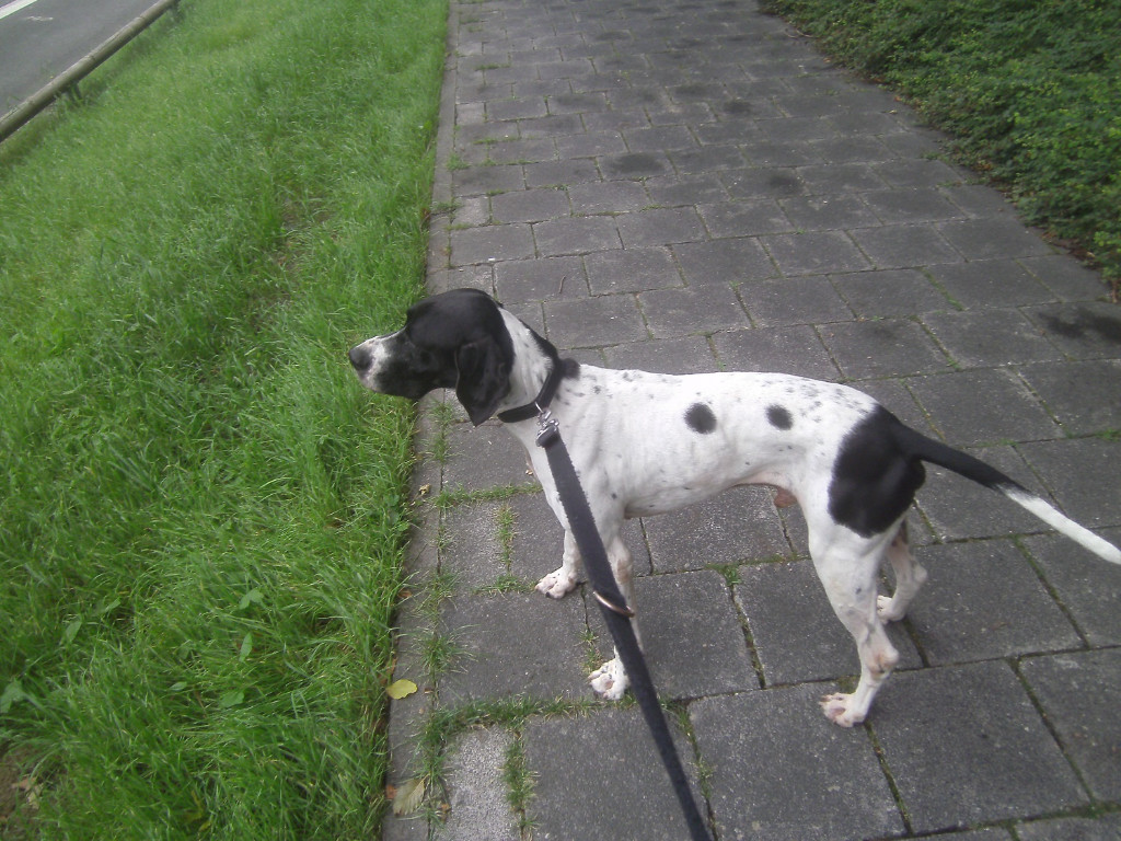 Draußen ist er Pointerlike anfangs etwas stürmisch, das legt sich nach kurzer Zeit und man kann mit ihm gut an der Leine laufen. Er ist ein geborener Hund zum Inline skaten (evtl. auch Fahrrad fahren) und man kann ihn sehr gut damit auslasten. Mit anderen Hunden versteht er sich prima, möglichen Konflikten geht er diplomatisch aus dem Weg. Katzen sind sein absolutes Beuteschema und sollten nicht im neuen Zuhause vorhanden sein, andere Hunde sind kein Problem (aber auch kein muss). Ungewohnten Situationen begegnet er anfänglich mit