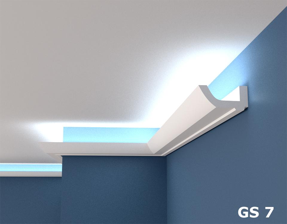 Das Angebot präsentiert Lichtleiste aus der Serie GS. Leisten werden aus extrudiertem Polystyrol (XPS) hergestellt.Bereit zum Einbau von LED-Streifen, der die Wand beleuchtet. Lichtleisten dienen als eine moderne, dekorative und funktionale Form der