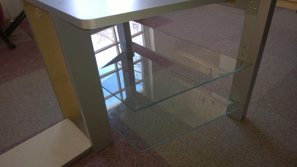 Glasplatten kann man in der Höhe flexibel verstellen. Die Deckplatte weist leichte