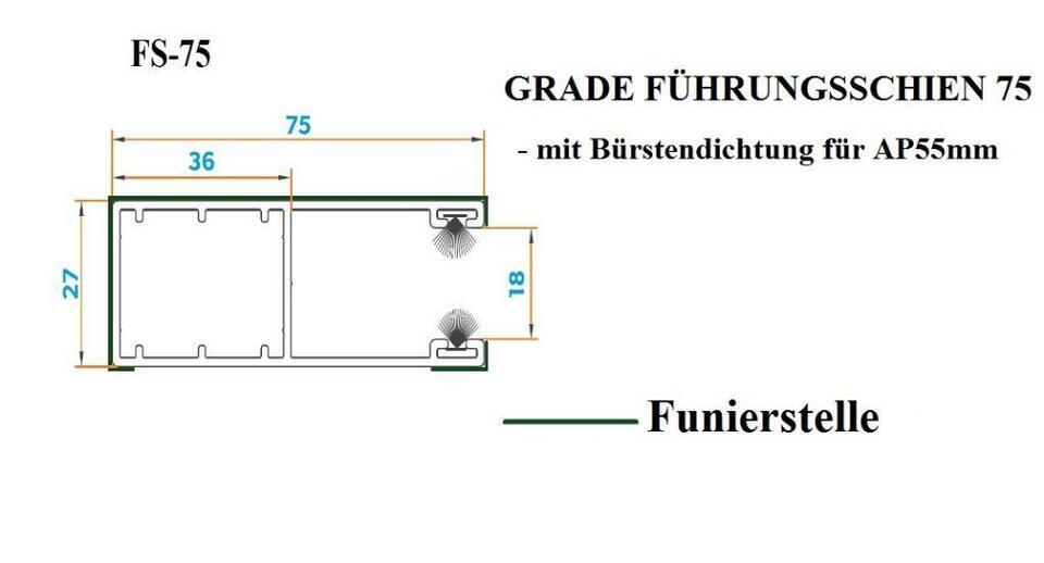 -Führungsschienen Aluminium RF 75 mm mit Bürsten-Dichtung