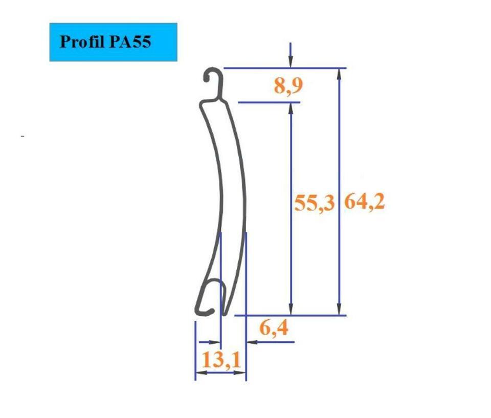 -Lamelle RT55 Aluminium mit einer Deckbreite von 55 mm arretiert und ausgeschäumt