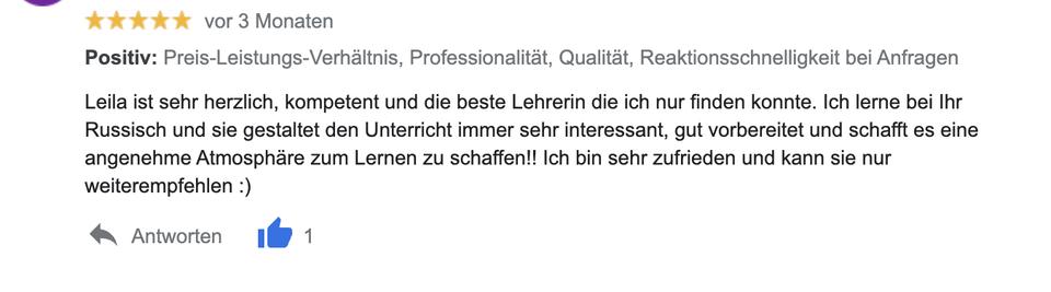 Sie lernen bei mir Russisch von einer gebürtigen Kasachin auf Universitätsniveau Deutsch C2 und muttersprachlich Russisch C2.