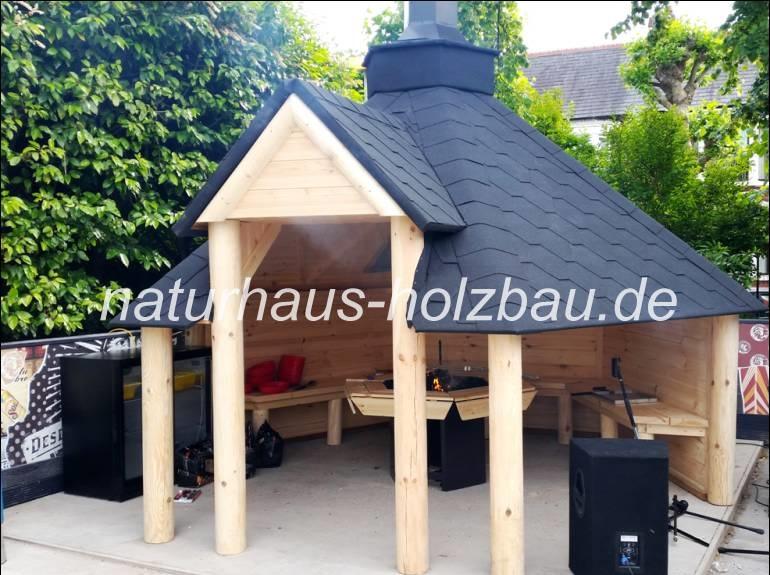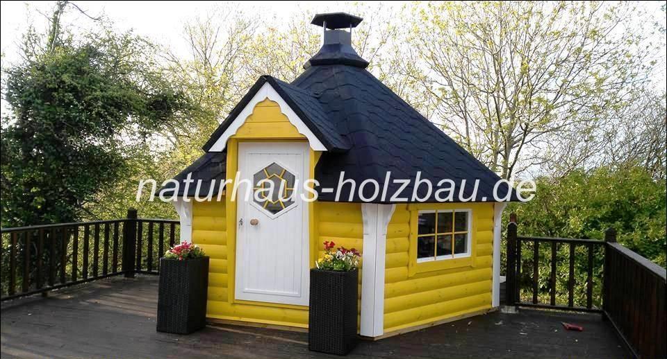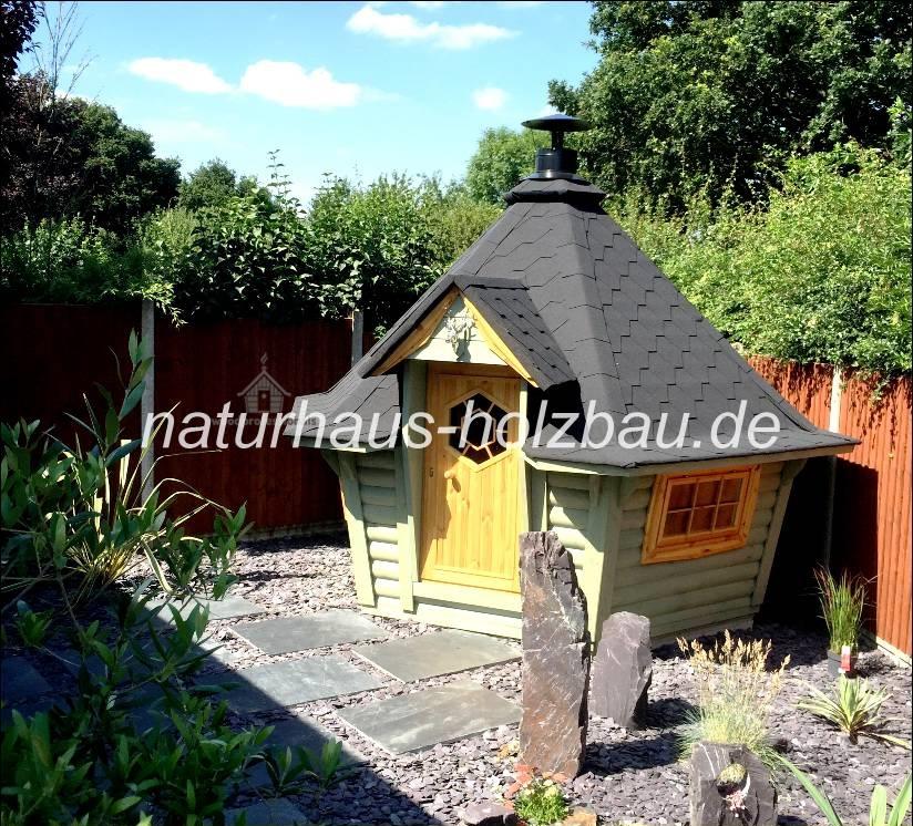 Naturhaus 6-Eck Saunakota NH 7,0 m , 6-Eck Saunakota 9,2 m , 6-Eck Saunakota 9,2/2 m in massiver 45 mm