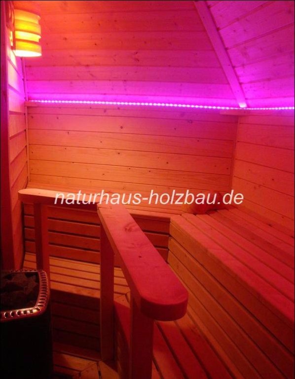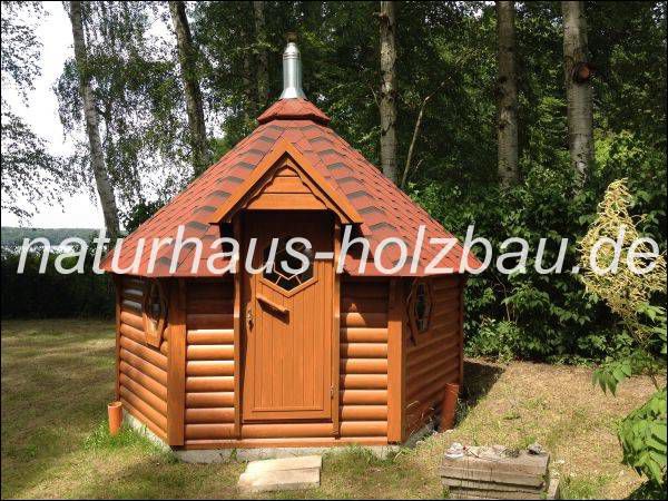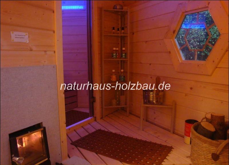 Naturhaus 6-Eck Saunakota NH 7,0 m , 6-Eck Saunakota 9,2 m , 6-Eck Saunakota 9,2/2 m in massiver 45 mm