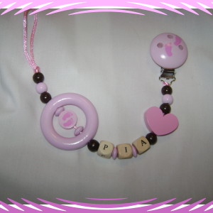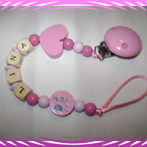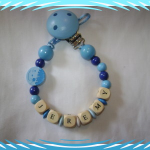 Bei uns können Sie Schnullerketten mit Namen erhalten. Diese werden je nach Kundenwunsch ganz Individuell nach Ihren Vorstellungen angefertigt. Gerne können Sie sich in unserem Online Shop Anregungen holen wie Ihre Schnullerkette oder auch ein anderes Produkt aussehen sollte. Setzen Sie sich gerne mit uns in Verbindung und lassen Sie sich beraten. Unser Material zum basteln bekommen wir aus Deutschland und die sowohl Speichelfest oder wie auch Schweißfest und Schadstoff arm. Wir richten und diesbezüglich nach der DIN Norm und halten uns streng nach den Vorgaben.