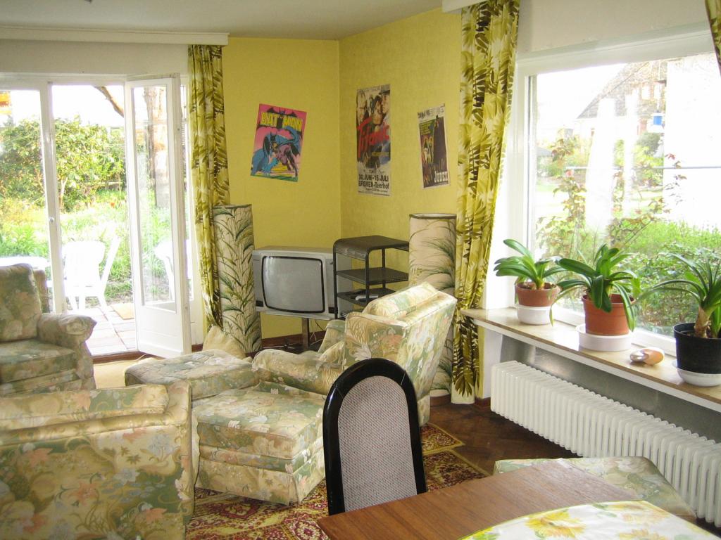 Aufenthaltsraum mit TV+DVD und einen Südbalkon, eine Südterrasse und einen Garten. Alles wird allein von den Mietern genutzt, die in einer Art Zweck-WG das Haus bewohnen.